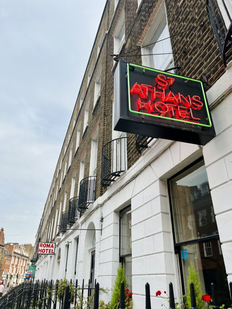 St Athans Hotel glowed in simple ways. A small neon sign above the door. Narrow staircases that creaked just enough to remind you the building had lived many lives before ours. The room was modest. Shared bathrooms. No frills. And yet, it held exactly what we needed. A place to set our bags down. A place to rinse the travel from our skin. A place to breathe.