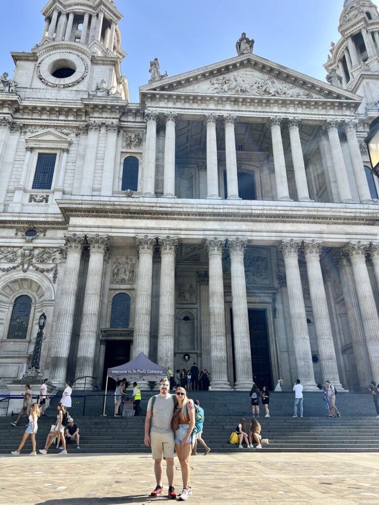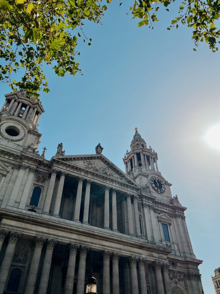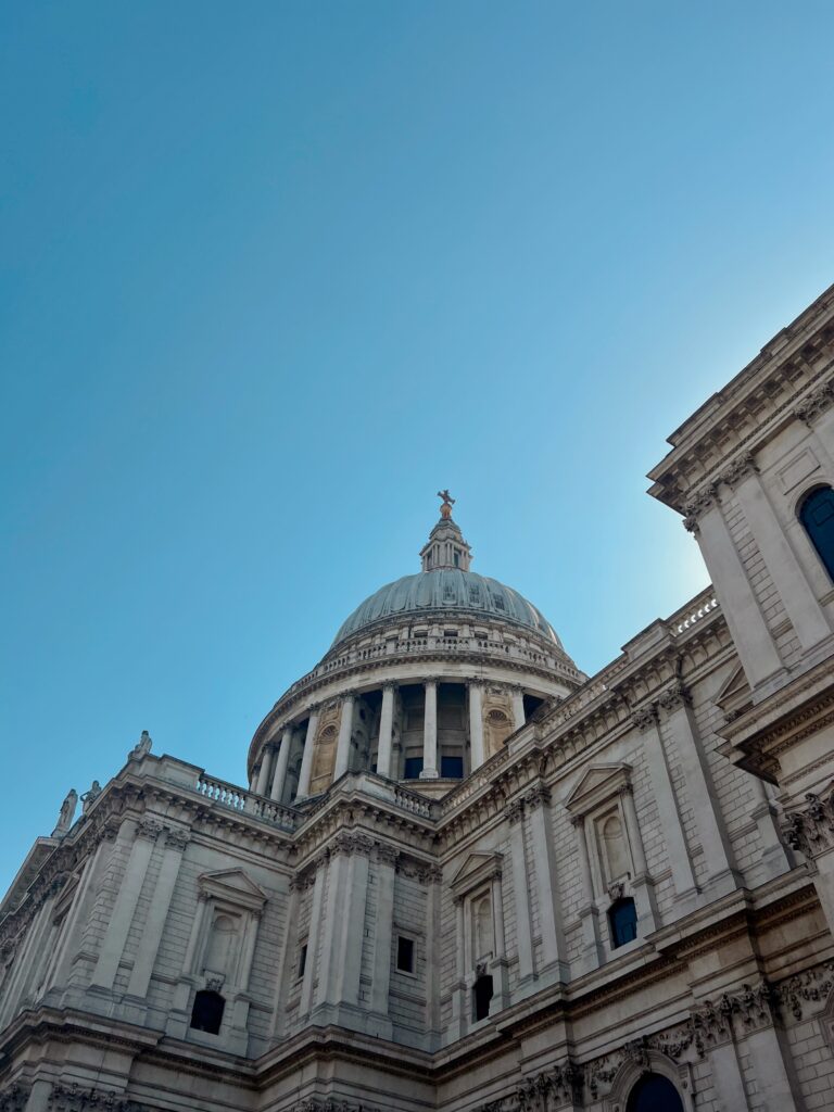 Walking toward St Paul’s felt like approaching stillness itself. The steps rose wide and pale beneath the morning sun. Columns towering. Stone glowing softly against the sky. From the outside it felt grand. Imposing. Almost impossible to take in all at once.