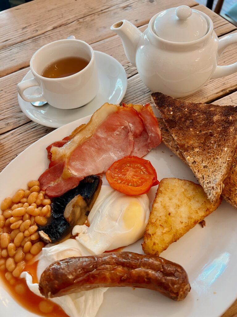 Warm tea and a full English breakfast that grounded us before another day of wandering.
